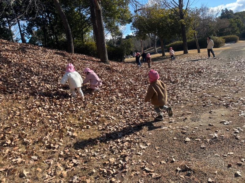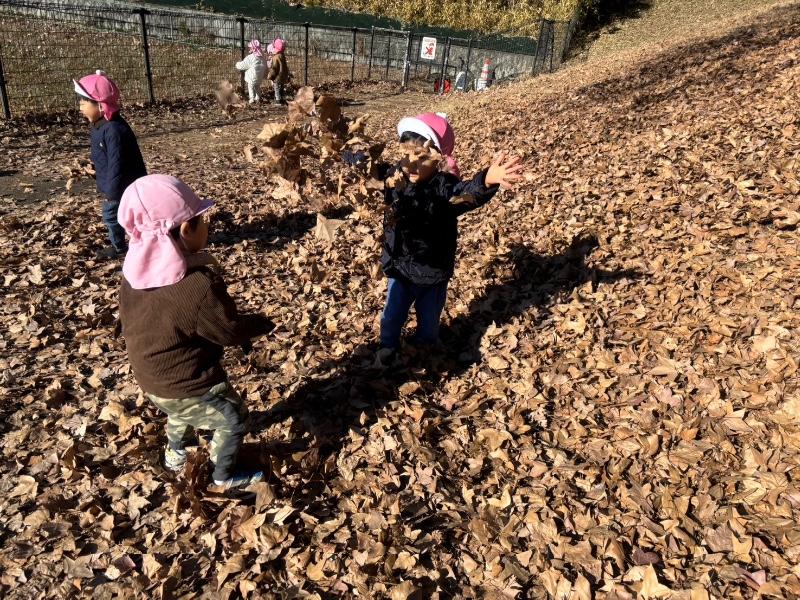落ち葉が沢山あったので大喜びで遊ぶ子ども達でした♡
