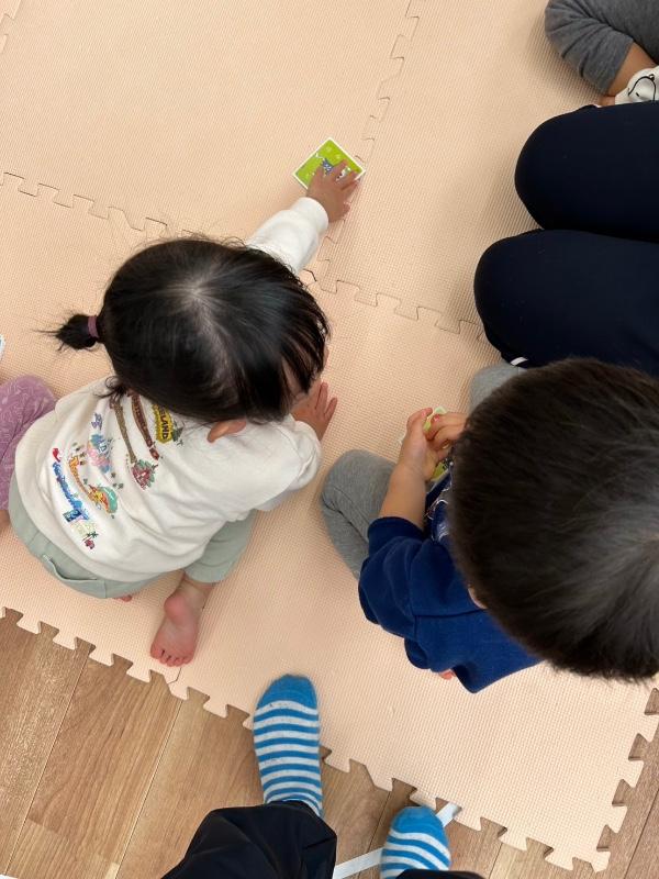読み札を保育者が読むと、「はい!」と元気いっぱいのお返事で札を取っていました♪