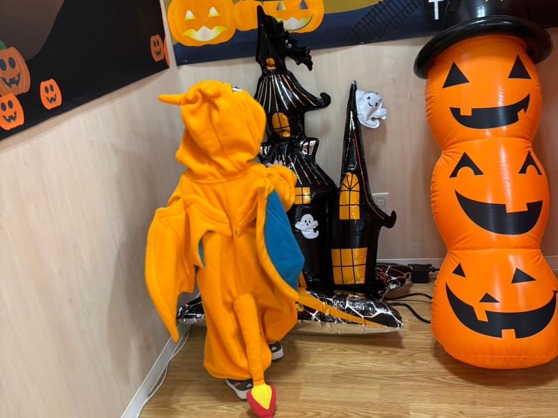 今日は、ハロウィンの先取りで仮装をして楽しみました♪ かわいい魔女やバナナマン、そしてプリンセス‥それぞれ好きな衣装も身にまとって遊んだり モンスターにボールを投げて大喜びの子ども達(^0^)♡ ハロウィン本番に向けて お部屋で仮装をしたり ハロウィンの体操して盛り上がりたいと思います!!