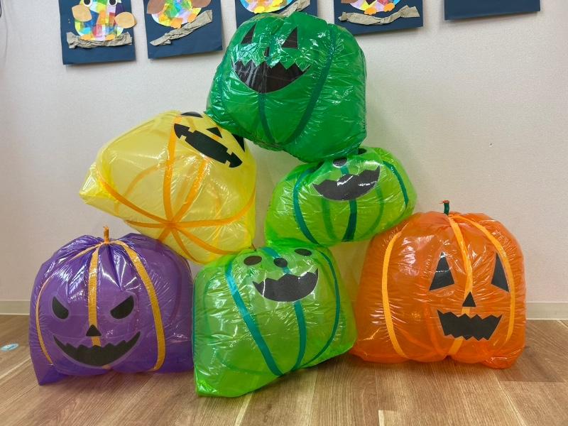 大きなカボチャの風船で遊んだり、的当て、モンスターたたきも楽しみました☆