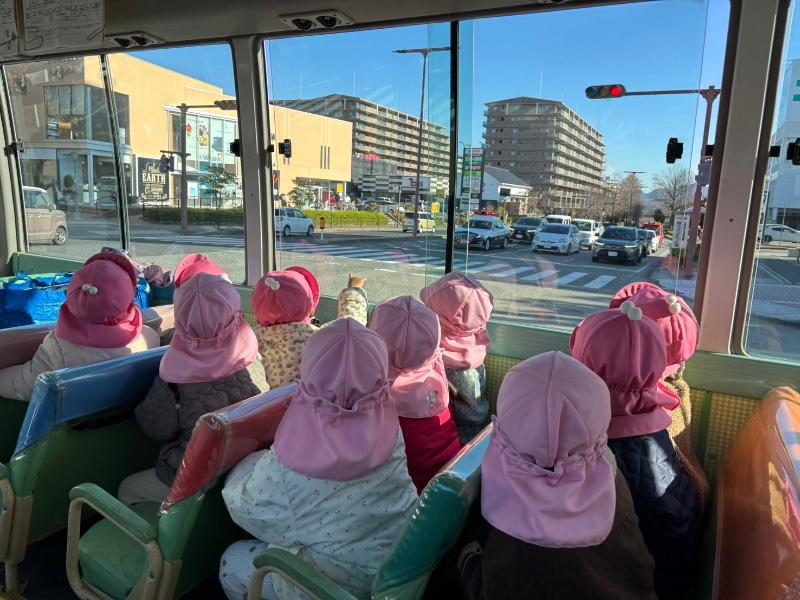 「バスに乗ってゆられてる〜!」「ゴーゴー!!」幼稚園バスの中は大盛り上がりでした(*^^*)