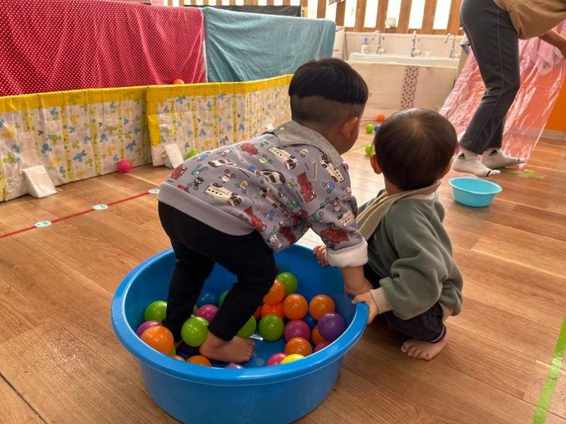 今日は、カラーボールをたくさん出して遊びました(^0^)