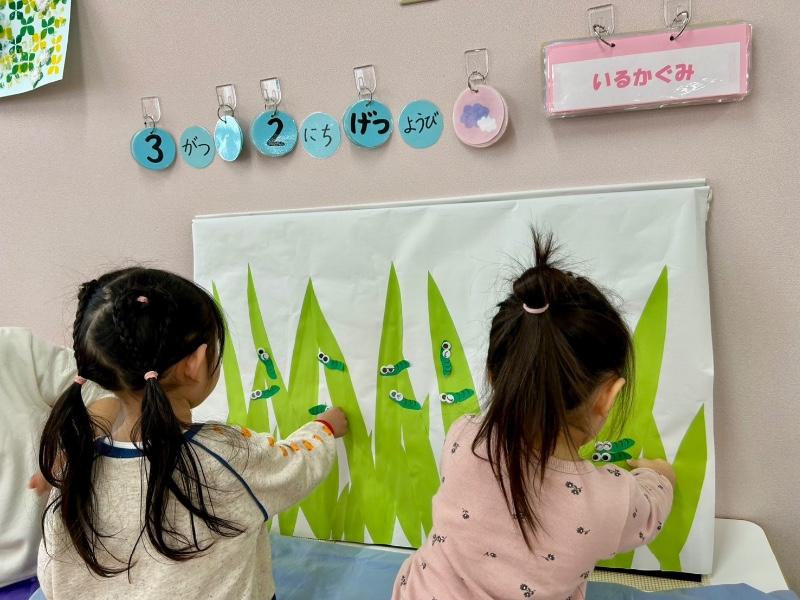 子ども達は、「キャベツの中から〜♪」と手遊びをしながら楽しみました(*^^*)