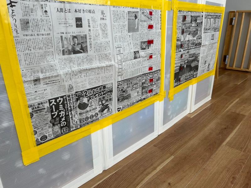 新聞紙のカーテンの出来上がり〜☆☆