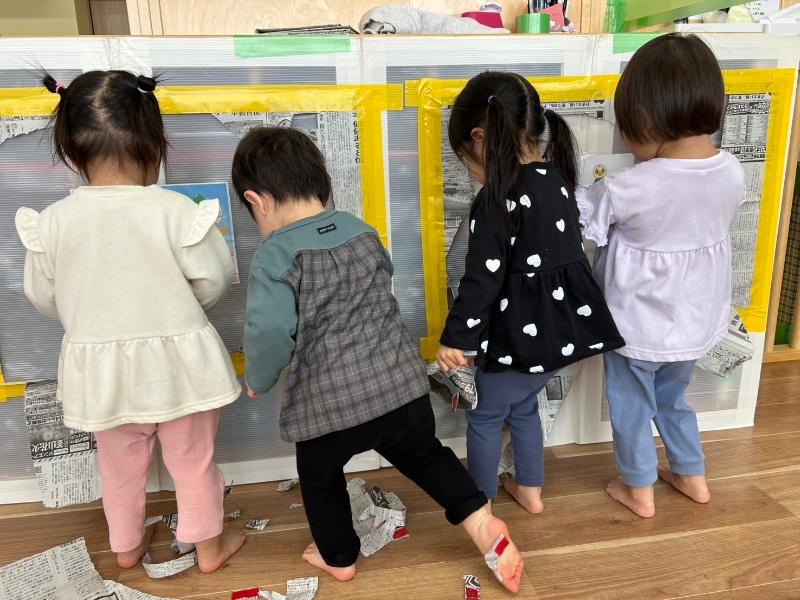 - 新聞紙遊び(2歳児)